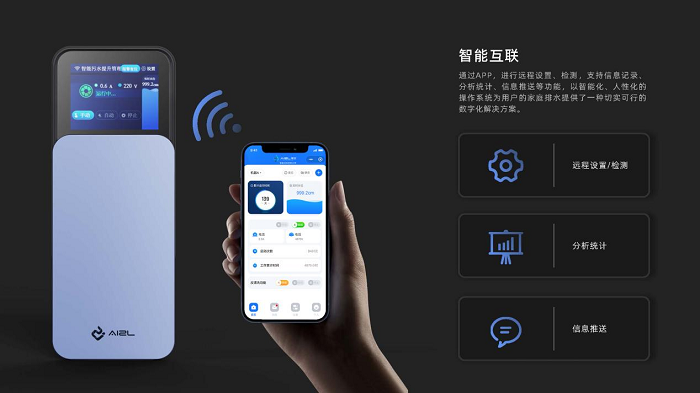 The AIZL system has also revolutionized traditional sewage lifting unit controllers. By integrating IoT technology, it introduced gravity-free drainage with intelligent control, allowing users to operate and adjust machine parameters directly from their smartphones. Thanks to the intelligent control design, the sewage lifting unit achieves self-cleaning in real terms – once the operation cycle and schedule are set via the mobile phone, tedious manual maintenance is eliminated. The intelligent alarm system enhances water safety in basements, immediately sending alerts to smartphones when an issue arises, and automatically shutting off the water valve to resolve problems quickly. The controller design significantly enhances comfort in everyday life.